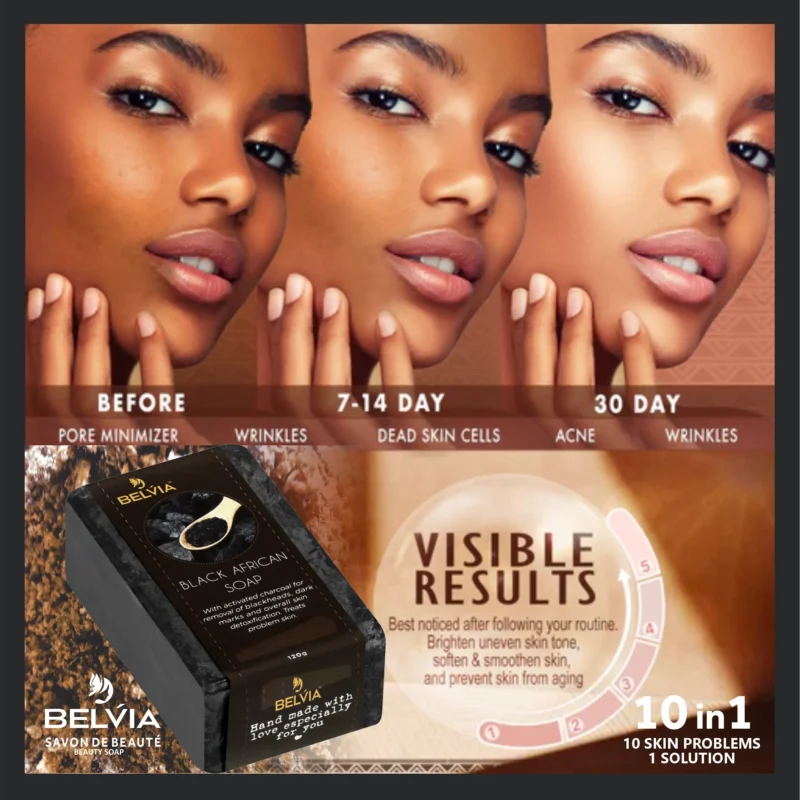 Premium Black African Rice Soap for acne, blemishes, dark spots, and pimples. Natural formula moisturizes while clearing skin, reducing freckles for a radiant, healthy complexion. Gentle daily skincare solution.